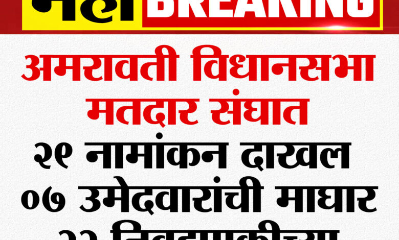 अमरावती विधानसभा मतदार संघात २९ नामांकन दाखल, ७ उमेदवारांची माघार, २२ निवडणुकीच्या रिंगणात