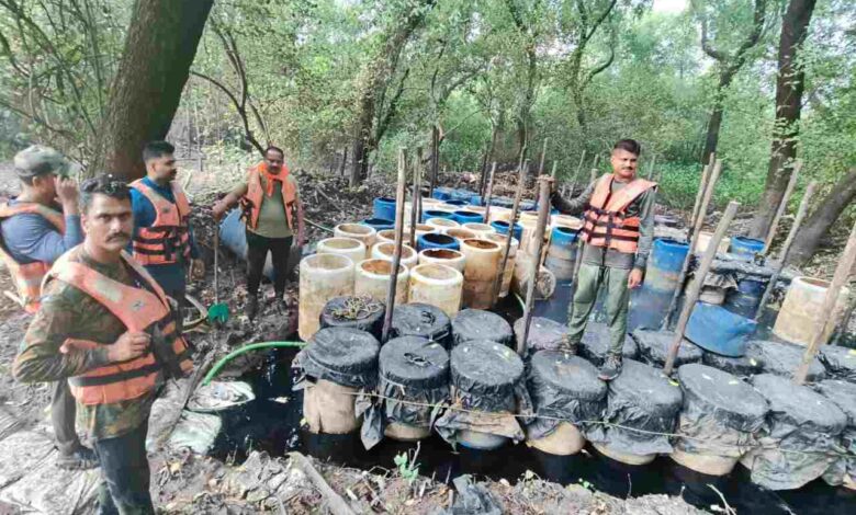 मुंबई, दि. 12 : राज्य उत्पादन शुल्क विभागाच्या विविध पथकांनी ठाणे जिल्ह्यात अंजूरगाव आणि आलीमघर खाडीमध्ये हातभट्टी केंद्रावर 11 नोव्हेंबर रोजी सामुहिक धाडसत्र मोहिम राबवून एकूण सात गुन्हे नोंदविले आहे. या कारवाईत 200 लीटर क्षमतेच्या 354 ड्रम्स, 1000 लीटर क्षमतेचे तीन बॉयलर व अन्य हातभट्टी साहित्याचा मुद्देमाल जप्त केला. सदर माल हा नाशवंत असल्यामुळे जागेवरच नष्ट करण्यात आला असून या मुद्देमालाची किंमत 20 लाख 75 हजार आहे.