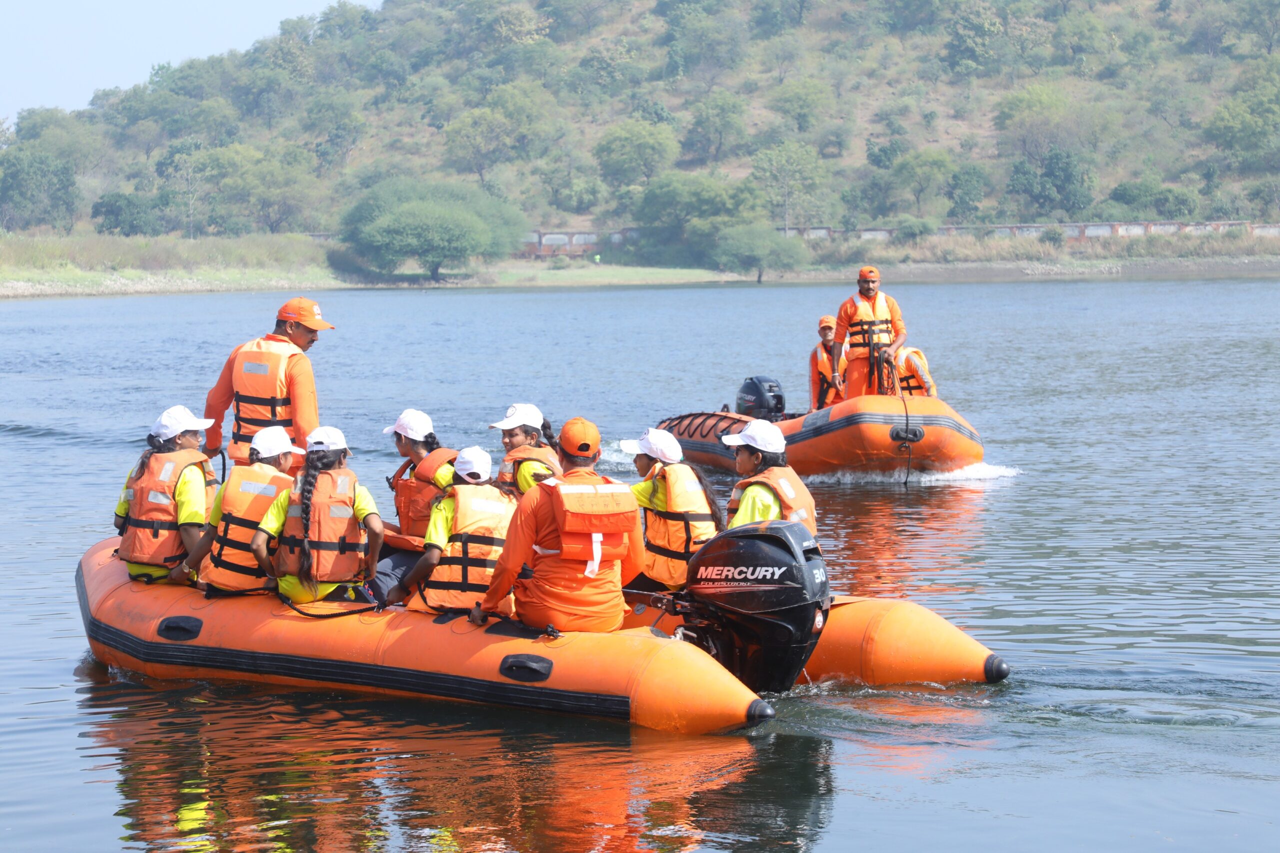 चक्रीवादळ हे अत्यंत कमी दाब असलेले क्षेत्र असते, यामध्ये वादळाच्या केंद्रातून दाब वाढत जातो. दबावाचे प्रमाण त्याच्या केंद्रामध्ये कमी कमी होत जाते व बाहेरील वादळाची तीव्रता, हवेचा वेग अधिक वाढत जातो. समुद्रात एका कमी दाबाच्या प्रदेशाभोवती गोलगोल फिरणा-या हवेमुळे बनणारे वादळ म्हणजे चक्रीवादळ होय. महाराष्ट्रातील काही भाग हा प्रामुख्याने अशा प्रकारच्या वादळामुळे प्रभावित होतो व यामुळे जीवितहानी तसेच वित्तहानी होत असते. अशा प्रकारच्या वादळापासून बचावासाठी वादळाचा अंदाज घेऊन व यंत्रणा सज्ज ठेऊन होणा-या नुकसानीची तीव्रता कमी करणे, वित्तहानी व जीवितहानी टाळणे याविषयी सुद्धा सविस्तर माहिती एन. डी. आर. एफ. च्या तज्ज्ञ प्रशिक्षकांव्दारे विद्याथ्र्यांना देण्यात आली. त्याचबरोबर सर्व विषयांवर सराव व प्रात्यक्षित घेण्यात आले.