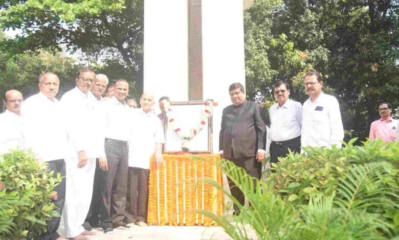 मुंबई, दि. १३ : माजी मुख्यमंत्री व सहकार महर्षी वसंतदादा पाटील यांच्या जयंतीनिमित्त विधानभवन परिसरातील त्यांच्या पुतळ्यास विधानमंडळ सचिवालयाचे सचिव जितेंद्र भोळे व डॉ. विलास आठवले यानी पुष्पहार अर्पण करून अभिवादन केले.