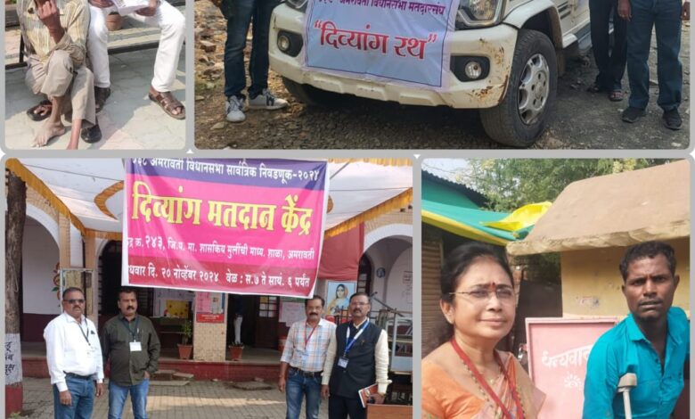 भारत निवडणूक आयोगाच्या दिशा निर्देशानुसार अमरावती जिल्हा करिता म्हणून माननीय जिल्हाधिकारी श्री. सौरभ कटियार यांनी पीडब्ल्यूडी करिता स्वतंत्र नोडल अधिकारी म्हणून श्रीमती. जया राऊत यांची व अधिनस्त सहाय्यक नोडल अधिकारी म्हणून श्री. राजेंद्र जाधवर, श्री. ज्ञानबा पुंड, श्री. पुरुषोत्तम शिंदे, श्री. पवन साबळे, श्री. भरत राऊत, श्रीमती. शालिनी गायगोले, श्री. उमेश धुमाळे, श्री. आशिष चुनडे, श्री. पंकज मुदगल व श्री. निरज तिवारी यांची नियुक्ती करण्यात आलेली असून त्यांनी संपूर्ण जिल्हाभर पीडब्ल्यूडी मतदानाचा टक्का वाढविण्याकरिता प्रचार प्रसिद्धीसह विविध उपक्रम राबविण्यात आले त्याचबरोबर दिव्यांगांचा मतदानाचा टक्का वाढावा म्हणून जिल्हा समाज कल्याण अधिकारी तथा सहाय्यक नोडल अधिकारी श्री. ज्ञानबा पुंड यांच्या मार्गदर्शनात दिव्यांगांचे मतदान शंभर टक्के व्हावे याकरिता अमरावती जिल्ह्यातील आठ ही विधानसभा मतदार संघा मध्ये नावीन्यपूर्ण उपक्रम म्हणून प्रत्यक्ष मतदानाच्या दिवशी दिव्यांग संस्थेत कार्यरत 423 मुख्याध्यापक, शिक्षक व शिक्षकेतर कर्मचाऱ्यांना दिव्यांग मतदारांची नाव व पत्त्यासह यादी वाटप करून जिल्ह्यातील 17,175 दिव्यांग मतदाराची मतदानाची जबाबदारी 423 कर्मचाऱ्यांवर देण्यात आली कर्मचाऱ्यांनी प्रत्यक्ष दिव्यांगाशी संपर्क साधून त्याच्या घरापर्यंत जाऊन त्यांना आवश्यक त्या सर्व सोयी सुविधा उपलब्ध करून देऊन त्यांचे मतदान करून घेण्याची जबाबदारी देण्यात आली यासाठी एकूण 423 दिव्यांग संस्थेत कार्यरत कर्मचाऱ्यां ची नियुक्ती जिल्हा समाज कल्याण अधिकारी श्री. डी. एम. पुंड यांच्याकडून करण्यात आली एका कर्मचाऱ्याकडे सरासरी 50 दिव्यांग मतदाराची जबाबदारी आली हे संपूर्ण नियोजन सहाय्यक नोडल अधिकारी श्री. उमेश धुमाळे श्री. आशिष चुनाळे श्री. पंकज मुदगल श्री. पि. डी. शिंदे श्री. दीपक दुधबळे यांच्या सहकार्याने करण्यात आले.