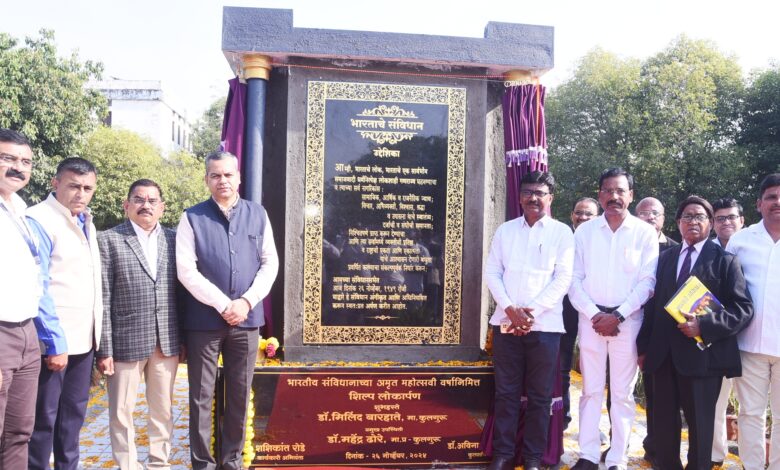भारतीय संविधानाच्या अमृत महोत्सवी वर्षानिमित्त विद्यापीठात संविधान शिल्पाचे लोकार्पण