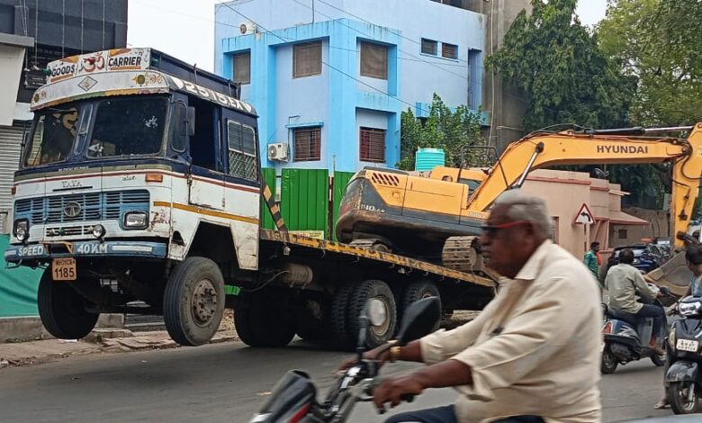 राजापेठ परिसरातील नंदा मार्केट समोर एका ट्र्क मधून जेसीबी उतरवण्यात आला . दुरून कुठूनतरी हा जेसीबी वाहून आणला . ट्र्क मधून जेसीबी उतरवताना चांगलीच कसरत करावी लागली प्रचंड वजनाचा जेसीबी ट्र्क मधून उतरवताना जेसीबीच्या वजनाने ट्र्कचे समोरील चाकं अक्षरशः वर उचलल्या गेले आता जेसीबीच्या वजनाने ट्रक मागच्या मागे उलटतो कि काय अशी भीती बघणाऱ्यांना वाटली मंगळवारी आमच्या सिटी न्यूज कडे प्राप्त झालेल्या फुटेज मध्ये राजापेठ परिसरातील नंदा मार्केट समोर ट्रक मधून जेसीबी खाली उतरविला जात असताना येथे बघ्यांनी गर्दी केली