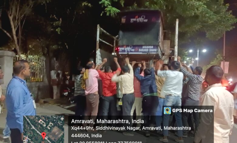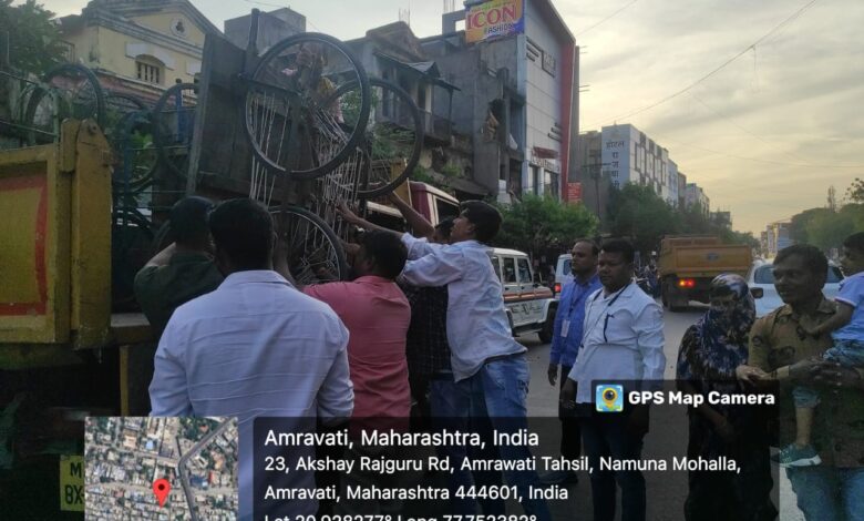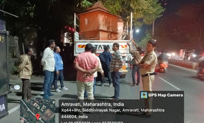 मा.आयुक्त व मा.उपायुक्त प्रशासन यांच्या आदेशाने सोमवार दिनांक ०९/१२/२०२४ रोजी अतिक्रमण पथक प्रमुख योगेश कोल्हे निरीक्षक अन्सार अहमद यांच्या मार्गदर्शनाखाली अंबापेठ, नमुना, राजकमल ते गांधी चौक, गांधी चौक ते इतवारा बाजार,चौधरी चौक ते विलास नगर रोड,शेगाव नाका ते कठोरा रोड,येथे साहित्य जप्तीची कारवाई करण्यात आली ५ ट्रक साहित्य जप्तीची अतिक्रमण निर्मूलनाची कार्यवाही करण्यात आली. सदर ठिकाणी रोडच्या दोन्ही बाजूंनी अतिक्रमण निर्मूलनाची कार्यवाही करण्यात आली. तसेच अतिक्रमणधारकांना सूचना देण्यात आल्या वाहतुकीला अडथळा निर्माण झाल्यास दैनंदिन कारवाई सुरू राहणार सदर कार्यवाहीत अतिक्रमण विभागाचे कर्मचारी व पोलीस कर्मचारी उपस्थित होते.