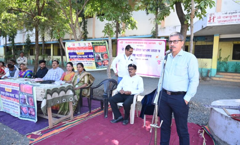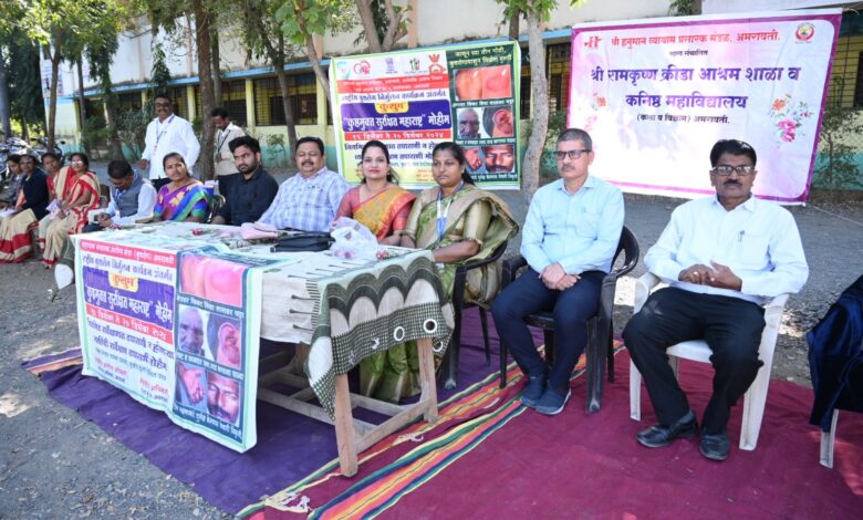 अमरावती :- अमरावती महानगरपालिका शहरी आरोग्य केंद्र क्र.६ भाजीबाजार व श्री हनुमान व्यायाम प्रसारक मंडळ अमरावती द्वारा संचालित श्री रामकृष्ण क्रीडा आश्रम शाळा व कनिष्ठ महाविद्यालय, अमरावती च्या वतीने सोमवार दिनांक १६ डिसेंबर,२०२४ रोजी राष्ट्रीय कुष्ठरोग निर्मुलन कार्यक्रम अंतर्गत “कुसुम” “कुष्ठमुक्त सुरक्षित महाराष्ट्र मोहीम” श्री रामकृष्ण क्रीडा आश्रम शाळा व कनिष्ठ महाविद्यालय येथे आयोजित करण्यात आले. या कार्यक्रमात प्रमुख अतिथी म्हणून डॉ.पूनम मोहोकार सहाय्यक संचालक आरोग्य सेवा कुष्ठरोग अमरावती, वैद्यकीय आरोग्य अधिकारी डॉ.विशाल काळे, वैद्यकीय अधिकारी डॉ.संदिप पाटबागे, डॉ.विनंती नवरे पर्यवेक्षकीय नागरी कुष्ठरोगपथक अमरावती, डॉ.फिरोज खान शहरी क्षयरोग अधिकारी मनपा अमरावती, डॉ.सैफ खान वैद्यकीय अधिकारी शहरी आरोग्य केंद्र भाजीबाजार, प्राचार्य एस.यु. भारसाकळे श्री रामकृष्ण क्रीडा आश्रम शाळा व कनिष्ठ महाविद्यालय, श्रीमती उमा जाधव आरोग्य पर्यवेक्षीका, अतुल धुंडे कुष्ठरोग तंत्रज्ञ, गजानन पन्हाळे अवैद्यकीय पर्यवेक्षक, अविनाश इंगळे कुष्ठरोग तंत्रज्ञ, शशीकांत जयस्वाल आरोग्य सेवक, सर्व सिस्टर श्रीमती धोटे, श्रीमती मानकर, प्रिती वानखडे, अंकीता बनकर, लीना वानखडे, सिता जाधव, जयश्री भगत तसेच आशा वर्कर मोठ्या संख्येने उपस्थित होते. उपस्थित होते. यावेळी सर्व मान्यवरांचे स्वागत करुन कार्यक्रमाला सुरुवात करण्यात आली.