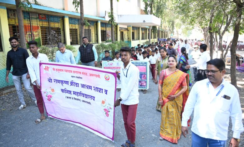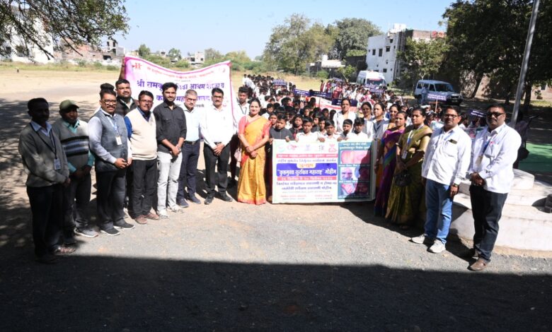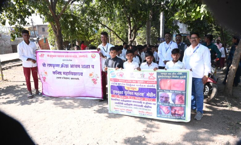 राष्ट्रीय कुष्ठरोग निर्मुलन कार्यक्रम अंतर्गत “कुसुम” “कुष्ठमुक्त सुरक्षित महाराष्ट्र मोहीम” श्री रामकृष्ण क्रीडा आश्रम शाळेतील विद्यार्थ्यांची आरोग्य तपासणी करण्यात आली. शहरातील श्री रामकृष्ण क्रीडा विद्यालय व कनिष्ठ महाविद्यालयातर्फे राष्ट्रीय कुष्ठरोग निर्मुलन कार्यक्रम अंतर्गत “कुसुम” “कुष्ठमुक्त सुरक्षित महाराष्ट्र मोहीम” अंतर्गत प्रभात फेरी काढण्यात आली. त्यामध्ये शाळेतील विद्यार्थ्यांनी सहभाग घेतला.
