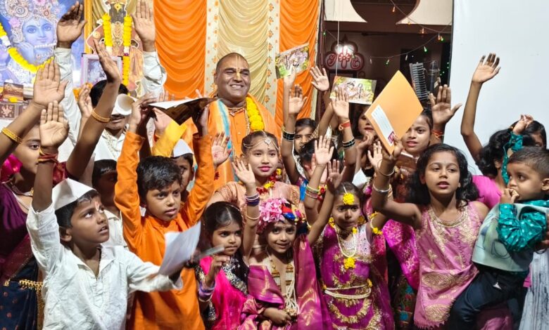 अमरावती :- राधा मधुसूदन सनातन संस्कृति संस्था के प्रमुख व समाज सेवक चंद्रकुमार जाजोदिया (लप्पीभैया) ने अपने जन्मदिन पर 108 कथा का संकल्प लिया जो पुरे राज्य में चल रहा है जिसमें 56 कथा पूरी हो चुकी है। यह कथा का उद्देश्य सनातन संस्कृति को प्रकाशित करना, आने वाली युवा पीढ़ी को नशा मुक्त रखना , स्कूल में जाकर भगवत गीता का महत्व समझाना उनको हनुमान चालीसा,कृष्ण महामंत्र, वह अनेक ऐसी बातें जो हिंदू संस्कृति से जुड़ी है। कथा में छोटे बच्चों को राधा कृष्ण की झाकी बना कर , रंगोली स्पर्धा रख कर , बच्चों का मनोबल बढ़ाते है।इस कथा के कथा वाचक अंतरराष्ट्रीय कृष्णभवनामृत संघ के मधुपति दास जी महाराज थे।