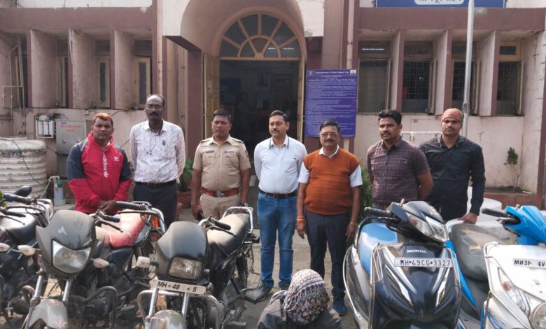 कळमना,नागपूर :- कळमना पोलिसांनी दुचाकी चोराला गुप्त माहितीवरून ५ दुचाकींसह अटक केलीय कळमना सब्जी मार्केट मधून मिथलेश सुरेश लिलरिया या २८ वर्षीय आरोपीने ४ गाड्या चोरी केल्या तसेच छत्तीसगड राज्यातून १ दुचाकी चोरी अशा २ लाख ५ हजाराच्या ५ दुचाकी जप्त केल्या तसेच विनयभंगाच्या पॉक्सो गुन्हयातील फरार आरोपी कुलजितसिंग उर्फ बब्बू पाजी रैन याला घटक शस्त्रांसह अटक करून आरोपीकडून पोलीस ठाणे सोनेगाव येथून चोरी केलेली ३०हजार रुप्यानाचा माल जप्त केला याबाबत पोलीस अधिकाऱ्यांनी माहिती दिलीय.
