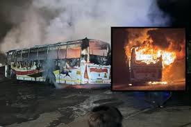 मुंबई आग्रा महामार्गावर शिवशाही बस जळून खाक