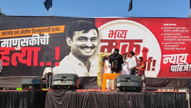 बीड जिल्ह्यातील मस्साजोगचे सरपंच संतोष देशमुख यांच्या निर्घृण हत्ये प्रकरणी आज 28 डिसेंबर रोजी बीडमध्ये सर्वपक्षीय मूक मोर्चा काढण्यात आला. या विराट सर्वपक्षीय मोर्चामध्ये बोलताना सर्व पक्षीय नेत्यांनी मंत्री धनंजय मुंडे यांची मंत्रिमंडळातून हकालपट्टीची मागणी करतानाच त्यांना बीडचे पालकमंत्रीपद सुद्धा देऊ नये, अशी मागणी एकमुखाने केली. बीडमधील दहशतीला मुंडे कारणीभूत असल्याचा आरोप अनेक नेत्यांनी केला. मूक मोर्चाला मराठा आंदोलक मनोज जरांगे पाटील, संभाजीराजे छत्रपती, जितेंद्र आव्हाड, खासदार बजरंग सोनवणे आमदार सुरेश धस, संदीप क्षीरसागर, प्रकाश सोळंके, अभिमन्यू पवार, नरेंद्र पाटील, ज्योती मेटकर आणि दीपक केदार यांनी संबोधित केले. संतोष देशमुख यांची कन्या वैभवीने सुद्धा मोर्चाला संबोधित केले. यावेळी वैभवीने काल ढगाआड गेलेला सूर्य आज दिसतोय, पण माझे वडिल कधीच दिसणार नाही म्हणताच मोर्चातील जनता गहिवरली.