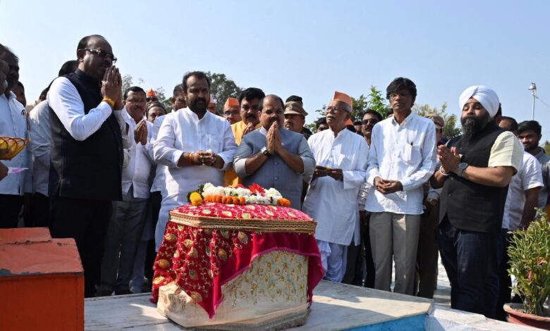 आज सकाळी पालकमंत्री श्री. बावनकुळे यांनी मोझरी येथील राष्ट्रसंत तुकडोजी महाराज यांच्या समाधीस्थळी भेट दिली. येथे त्यांनी पुष्पहार अर्पण करून अभिवादन केले आणि समाधीस्थळाचा विकास हा आपला कर्तव्य असल्याचे सांगितले. यावेळी आश्रमाच्या वतीने श्री. बावनकुळे यांचा शाल आणि श्रीफळ देऊन सत्कार करण्यात आला.”