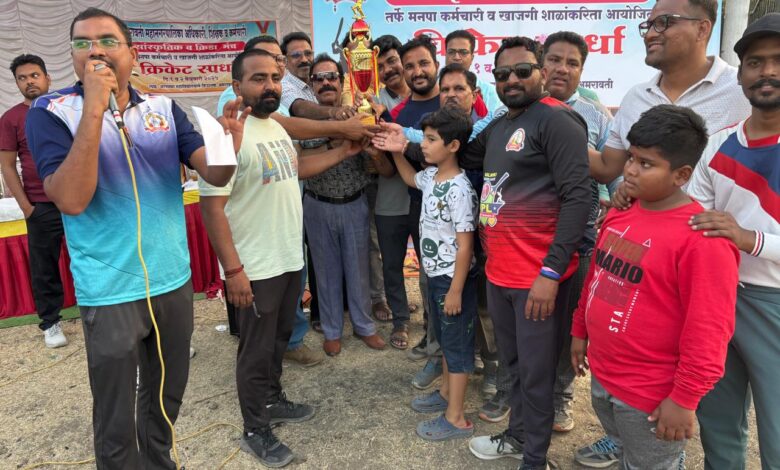 अमरावती महानगरपालिका अधिकारी कर्मचारी व शिक्षक ” सांस्कृतिक व क्रीडा मंच ” तर्फे आयोजित दोन दिवसीय क्रिकेट स्पर्धेचे बक्षीस वितरण कार्यक्रम नुकतेच पार पडले. उद्घाटन शनिवार दिनांक ०१ फेब्रुवारी २०२५ रोजी माननीय आयुक्त मनपा श्री सचिन कलंत्रे यांच्या हस्ते पार पडले. यावेळी मनपा मुख्य लेखाधिकारी नरेंद्र फिस्के, शिक्षणअधिकारी डॉक्टर प्रकाश मेश्राम, अतिरिक्त आयुक्त श्री महेश देशमुख , मनपा उपायुक्त श्री नरेंद्रजी वानखडे, मनपा कर्मचारी संघटनेचे सचिव प्रल्हाद कोतवाल ,सहायक आयुक्त नंदकिशोर तिखिले, लेखा विभाग अधीक्षक श्री प्रवीण इंगोले, मनपा कार्यकारी अभियंता श्री रवींद्र पवार, बाजार परवाना अधीक्षक उदय चव्हाण ,पशु शल्य चिकित्सक डॉक्टर सचिन बोंद्रे, माजी सैनिक श्री नामदेव मेटांगे , तसेच क्रीडा मंच अध्यक्ष श्री योगेश पखाले ,कार्याध्यक्ष कुणाल बांबल, एहफाज खान, अनुप भारंबे ,पंकज आकोडे ,रणजीत नितनवरे ,मोहसीन खान, सुरज जाधव,बिट्टू डेंडूले, जमील अहमद यांचे उपस्थितीत पार पडले होते. तसेच दोन दिवसीय स्पर्धा समाप्तीनंतर