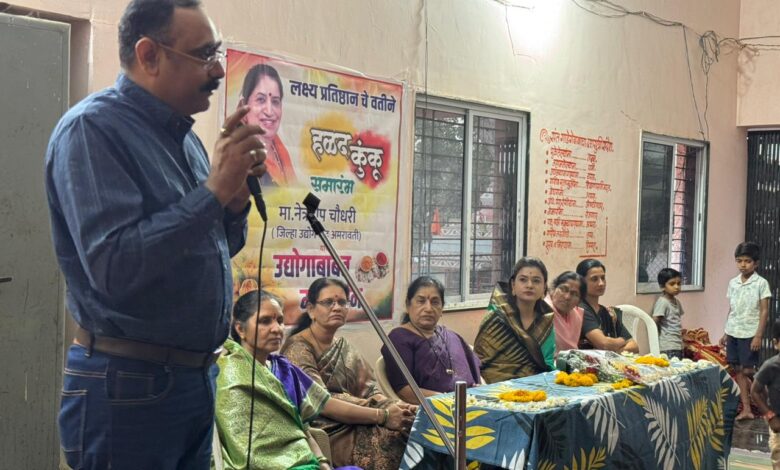 “हळदी कुंकवाच्या कार्यक्रमात महिलांना उद्योग प्रशिक्षण; सुरेखाताई ठाकरे यांच्या मार्गदर्शनाखाली कष्टकरी महिलांसाठी संकल्प!”