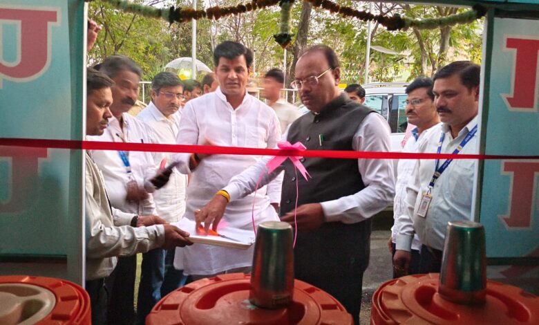 पालकमंत्री यांचे शुभहस्ते जी.प.कर्मचारीद्वारा सुरू केलेल्या पाणपोई चे उद्घघाटन आमदारांची ही होती उपस्थिती.