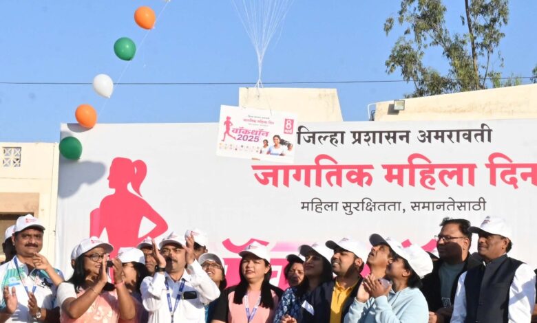 अमरावती :- जिल्हा प्रशासनातर्फे आंतरराष्ट्रीय महिला दिनानिमित्त आयोजित वॉकथॉनमध्ये महिलांनी उत्स्फूर्त सहभाग नोंदविला. तसेच समारोपीय कार्यक्रमात विविध क्षेत्रात कार्यरत महिलांचा सन्मान करण्यात आला.
