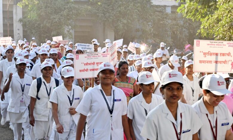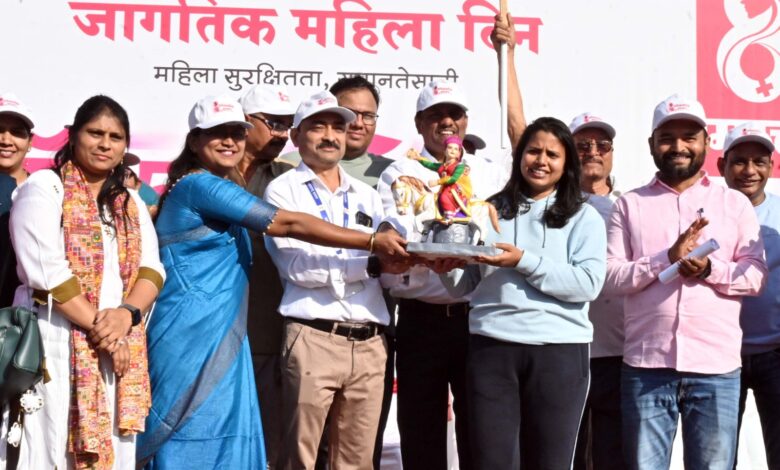 वॉकथॉनमध्ये महिलांचा उत्स्फूर्त सहभाग विविध क्षेत्रात कार्यरत महिलांचा सन्मान