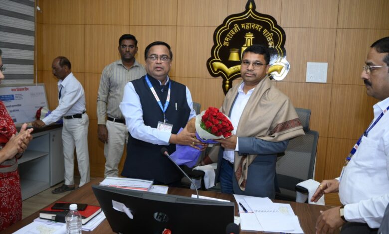 अमरावती :- मा.अॅड. धर्मपाल मेश्राम उपाध्यक्ष तथा सदस्य (सचिव दर्जा) महाराष्ट्र राज्य, अनुसूचित जाती जमाती आयोग, मुंबई यांनी अमरावती महानगरपालिकेला भेट दिली. मा.अॅड. धर्मपाल मेश्राम उपाध्यक्ष तथा सदस्य (सचिव दर्जा) महाराष्ट्र राज्य, अनुसूचित जाती जमाती आयोग, मुंबई यांनी अमरावती महानगरपालिकेला भेट दिल्याबद्दल त्यांचा यावेळी महानगरपालिका आयुक्त तथा प्रशासक सचिन कलंत्रे यांनी शाल, श्रीफळ, पुष्पगुच्छ देवून स्वागत व सत्कार केला.