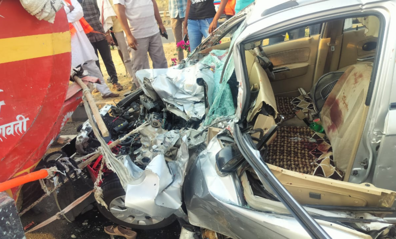 उभ्या ट्रॅक्टरला भरधाव कारची जोरदार धडक.