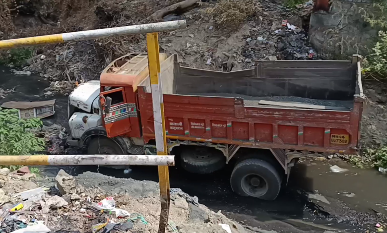 अमरावतीत ट्रक थेट नाल्यात! प्रशासनाच्या दुर्लक्षामुळे भीषण अपघात