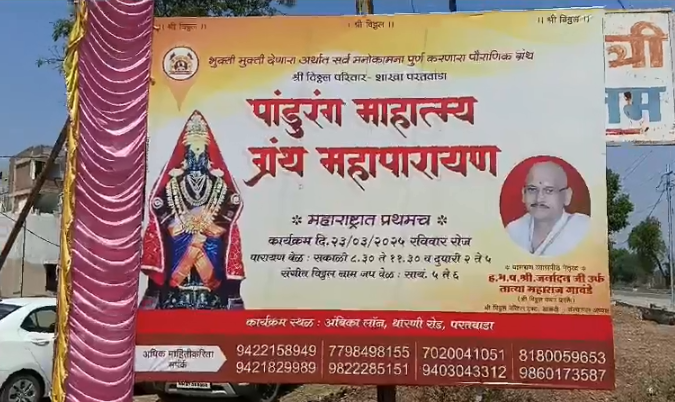 परतवाडा :- आज आपण आहोत ‘पांडुरंग महात्म्य महा पारायण’ या ऐतिहासिक आणि धार्मिक कार्यक्रमात. आपल्यासमोर परतवाडा येथील अंबिका लॉन्स येथे आयोजित केलेला एक विशेष महोत्सव आहे. श्री विठ्ठल परिवार परतवाडा यांच्या वतीने हा कार्यक्रम प्रथमच पारंपरिक स्वरूपात आयोजित केला गेला आहे. यामध्ये प्रमुख भूमिका ह भ प श्री जनार्दन श्री उर्फ तात्या महाराज गावंडे यांनी पारायणाच्या व्यासपीठावर निभावली. आजच्या या पवित्र कार्यक्रमात हजारो भक्त एकत्र येऊन पांडित्याच्या चरणी हजेरी लावण्याचा भाग होणार आहेत. चला, या अद्भुत यात्रा आणि भक्तिरसात झपाटलेला माहौल पाहूया.”