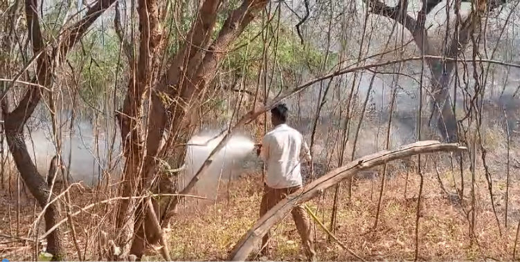 आज दुपारी 3 वाजताच्या सुमारास जवाहर नवोदय विद्यालयाच्या परिसरात असलेल्या जंगलाला अचानक आग लागली.कोरडे गवत आणि प्रचंड उष्णतेमुळे आगीने काही वेळातच भीषण रूप घेतले. आगीमुळे परिसरात घनदाट धूर पसरला असून नागरिकांमध्ये भीतीचे वातावरण निर्माण झाले आहे.