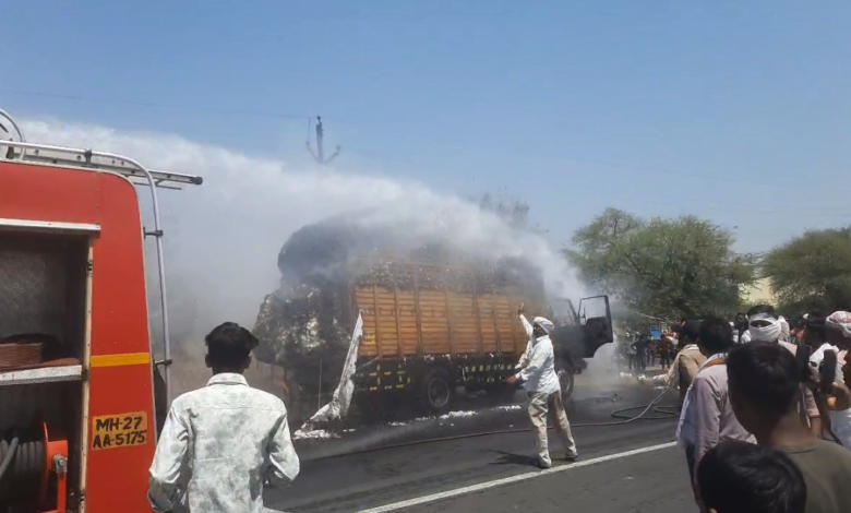 अमरावतीच्या दर्यापूरमध्ये कापसाने भरलेल्या ट्रकला भीषण आग | ट्रकसह कापूस जळून खाक