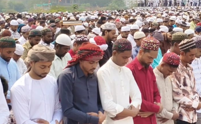 ईदगाह मैदानावर सकाळी मौलानांच्या मार्गदर्शनाखाली हजारोंच्या संख्येने मुस्लिम बांधवांनी सामूहिक नमाज अदा केली. अरबी खुतबा वाचल्यानंतर सामूहिक दुआ करण्यात आली. या प्रार्थनेत शांतता, समृद्धी आणि आरोग्यासाठी विशेष प्रार्थना करण्यात आली. नमाजानंतर मुस्लिम बांधवांनी एकमेकांना ईदच्या शुभेच्छा दिल्या आणि मिठी मारून सणाचा आनंद साजरा केला.