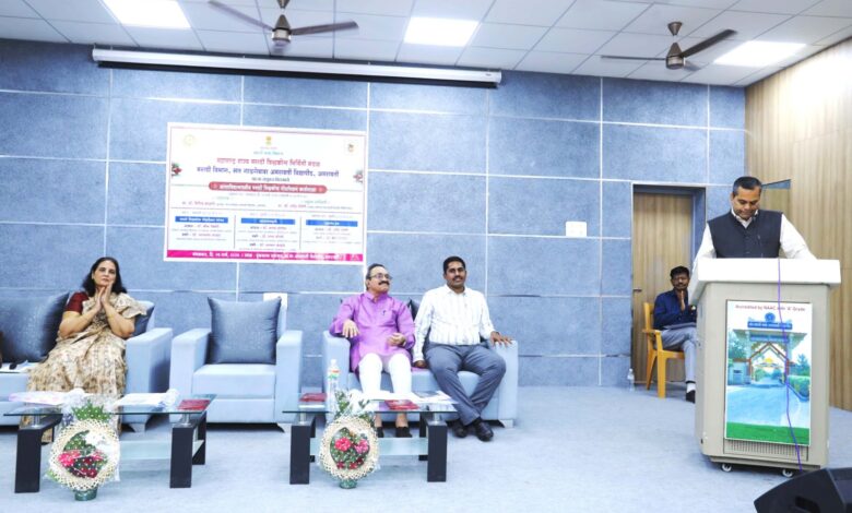 अमरावती :- “आजच्या युवापिढीपर्यंत मराठी विश्वकोश पोहोचवणे अत्यंत महत्त्वाचे आहे. कोणत्याही क्षेत्रात यशस्वी होण्यासाठी, त्या क्षेत्रातील नवनवीन ज्ञान, अद्यावत कौशल्ये आणि माहिती आत्मसात करणे आवश्यक आहे. यासाठी कोशवाङ्मय हे एक प्रभावी साधन आहे,” असे प्रतिपादन संत गाडगे बाबा अमरावती विद्यापीठाचे कुलगुरू डॉ. मिलिंद बारहाते यांनी केले. ते मराठी भाषा विभाग, महाराष्ट्र राज्य मराठी विश्वकोश निर्मिती मंडळ आणि संत गाडगे बाबा अमरावती विद्यापीठाच्या संयुक्त विद्यमाने आयोजित आंतरविद्याशाखीय विश्वकोश नोंदलेखन कार्यशाळेच्या उद्घाटन समारंभात बोलत होते.