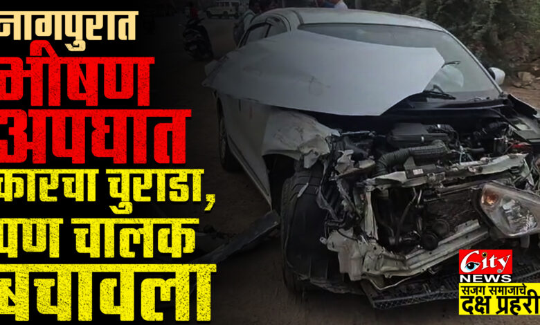 Accident News : नागपुरात भीषण अपघात! चार वाहनांची साखळी धडक – कारचा चुराडा, चालक बचावला!