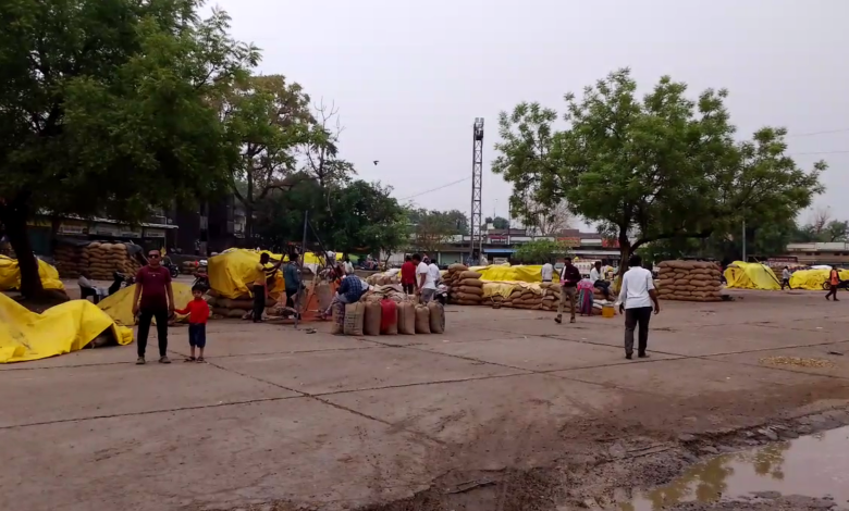 - ताडपत्रीचा प्रभावी वापर: बाजार समितीत आधीच साठवलेल्या धान्यावर ताडपत्री टाकून योग्य संरक्षण करण्यात आले होते.