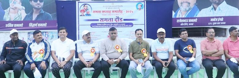 अमरावती – समता सप्ताहनिमित्ताने संत गाडगे बाबा अमरावती विद्यापीठातील डॉ. आंबेडकर अभ्यास केंद्राच्यावतीने आयोजित समता दौडमध्ये विद्यापीठ प्राधिकारिणी सदस्य, प्रशासकीय व शैक्षणिक विभागप्रमुख, शिक्षक, अधिकारी, कर्मचायांसह विद्यापीठ तसेच विद्यापीठाशी संलग्नित महाविद्यालयांतील विद्यार्थी-विद्यार्थींनी सहभाग घेतला. डॉ. पंजाबराव उपाख्य भाऊसाहेब देशमुख पुतळा, पंचवटी चौक ते डॉ. बाबासाहेब आंबेडकर चौक दरम्यान ही ‘समता दौड’ काढण्यात आली. विद्यापीठाचे कुलगुरू डॉ. मिलींद बारहाते यांचे मार्गदर्शनाखाली समता दौडचे आयोजन करण्यात आले. यावेळी हिरवी झेंडी दाखवून प्र-कुलगुरू डॉ. महेंद्र ढोरे यांच्या हस्ते उद्घाटन करण्यात आले. यावेळी डॉ. पंजाबराव उपाख्य भाऊसाहेब देशमुख यांच्या तसेच डॉ. बाबासाहेब आंबेडकर यांच्या पुतळ्याला डॉ. ढोरे यांनी पुष्पहार अर्पण करुन अभिवादन केले. दौड दरम्यान श्री शिवाजी कला व वाणिज्य महाविद्यालय येथे समता सप्ताहनिमित्त महामानव डॉ. बाबासाहेब आंबेडकर, डॉ. पंजाबराव देशमुख व महात्मा फुले यांच्या प्रतिमांना गुलाबपुष्प अर्पण करुन अभिवादन करण्यात आले.