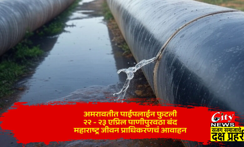 अमरावतीत पाईपलाईन फुटली, २२ – २३ एप्रिल पाणीपुरवठा बंद, महाराष्ट्र जीवन प्राधिकरणचं आवाहन
