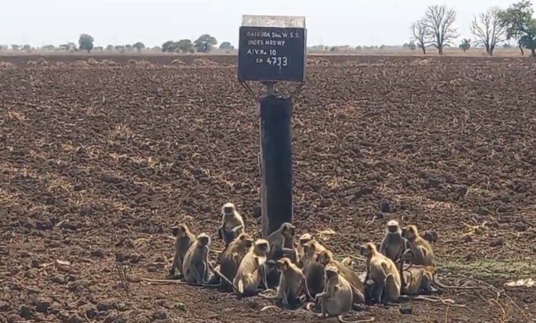 वन्य प्राण्यांची पाण्यासाठी भटकंती – म्हैसपुर मार्गावर माकडांचा थवा