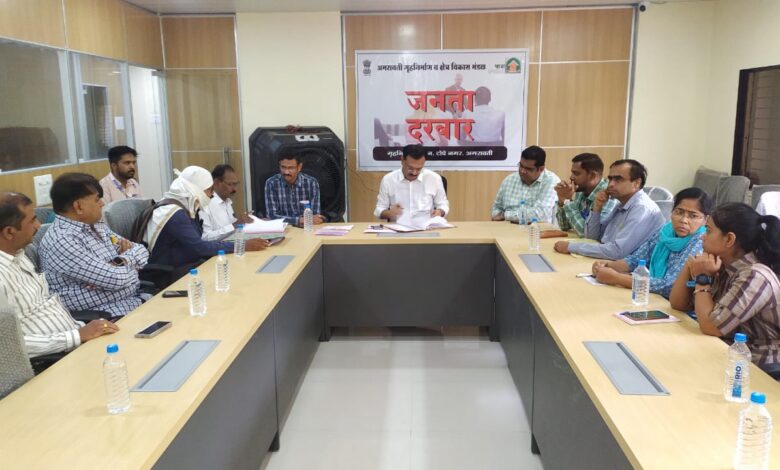 अमरावती : मुख्यमंत्री देवेंद्र फडणवीस यांच्या निर्देशानुसार राज्यभरात राबविण्यात येणाऱ्या 100 दिवसांच्या कृती कार्यक्रमांतर्गत अमरावती म्हाडा कार्यालयात जनता दरबाराचे आयोजन करण्यात आले. या दरबारात उपस्थित नागरिकांच्या तक्रारी ऐकून घेऊन त्या येत्या आठ दिवसांत सोडविण्याचे आदेश देण्यात आले आहेत.