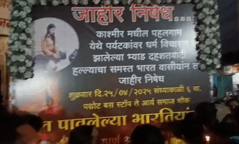 अचलपूर : जम्मू-कश्मीरमधील पहलगाम येथे झालेल्या दहशतवादी हल्ल्यात 26 निष्पाप नागरिकांचा मृत्यू झाल्यानंतर देशभरात संताप व्यक्त केला जात आहे. त्याच पार्श्वभूमीवर अचलपूर तालुक्यातील पथ्रोट गावात सर्वपक्षीय, सर्वधर्मीय नागरिकांनी एकत्र येऊन मृतांना श्रद्धांजली अर्पण केली.