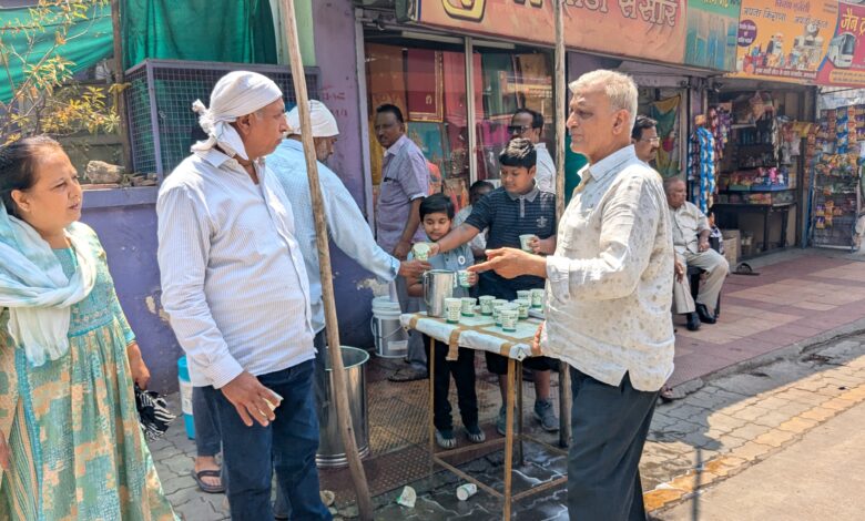 अमरावती : राजापेठ येथील निवासी असलेले ज्येष्ठ समाजसेवक तथा व्यावसायिक अमृतभाई मुथा त्यांच्यासोबत सामाजिक कार्यांमध्ये उत्साहाने सहभागी होणारे राजापेठ मित्र मंडळ यांच्या वतीने दरवर्षी उन्हाळा सुरू झाला की, दर रविवारी सकाळी साधारणपणे अकरा वाजेपर्यंत रस्त्याने ये-जा करणाऱ्या सर्व नागरिकांकरिता, ऑटोवाले, रिक्षा चालक, प्रवासी, मजूरवर्ग या सर्वांकरिता जिलेबी व त्यासोबतच ताक वाटप केले जाते. अत्यंत वर्दळ असलेल्या या राजापेठ चौकात अमृतभाई मुथा यांचे मुथा साडी सेंटरला लागून अमृतभाई मुथा व राजापेठ मित्र मंडळाचे अनेक कार्यकर्ते चौकात मोठ्या उत्साहाने गेल्या अनेक वर्षांपासून चौकात ताक वाटपाचा कार्यक्रम घेत आहेत.