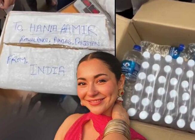 सध्या एक व्हिडीओ सोशल मीडियावर चांगलाच व्हायरल होतो आहे. या व्हिडीओमध्ये पाकिस्तानी अभिनेत्री हानिया आमिरला तिचा एक चाहता पाण्याचे बॉक्स पाठवताना दिसतो. हा बॉक्स कुरिअर करणारा मुलगा तो बॉक्स कॅमेरात दाखवतो. त्या बॉक्सवर लिहिलं असतं की, “हानिया आमिरसाठी…”, याच बॉक्सवर रावळपिंडी, पंजाब, पाकिस्तानचा पत्ता लिहिला होता. ‘भारताकडून हा पाण्याचा बॉक्स पाठवत आहे’, असं खाली नमूद करण्यात आलं होतं. अशाप्रकारे पाकिस्तानी अभिनेत्रीसाठी तिच्या भारतीय चाहत्याने ही खास कृती केलेली दिसली.