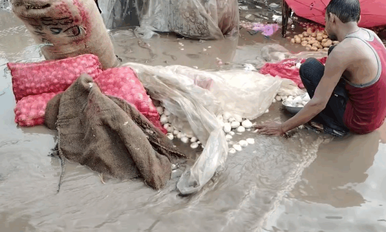 कांदा-आलू-लसूण रस्त्यावरच ओले; शेतमालाचे मोठे नुकसान