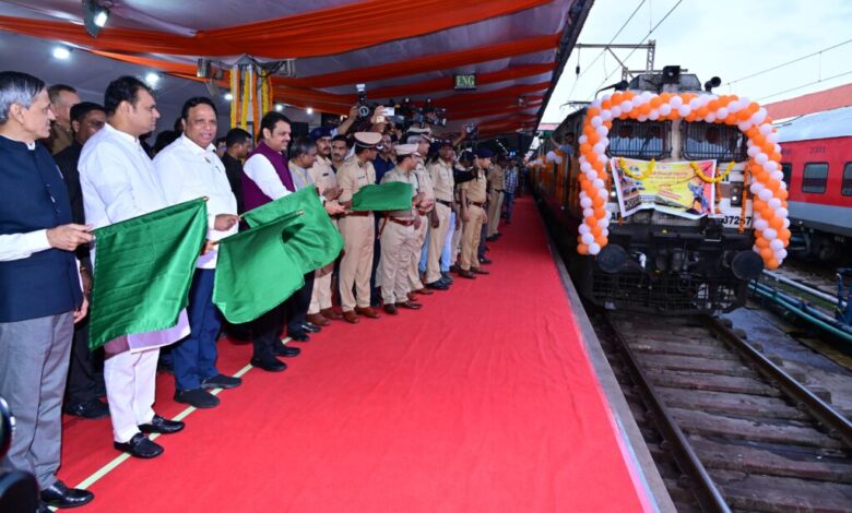 मुंबई – भारतीय रेल्वेची गौरव यात्रा अंतर्गत आज पासून सुरू होणारा छत्रपती शिवाजी महाराज सर्किट हा प्रवास सर्व प्रवाशांसाठी एक प्रेरणादायी अनुभव असेल असे प्रतिपादन मुख्यमंत्री देवेंद्र फडणवीस यांनी केले. छत्रपती शिवाजी महाराज टर्मिनस येथे छत्रपती शिवाजी महाराज सर्किट अंतर्गत भारत गौरव रेल्वेच्या शुभारंभ प्रसंगी ते बोलत होते.