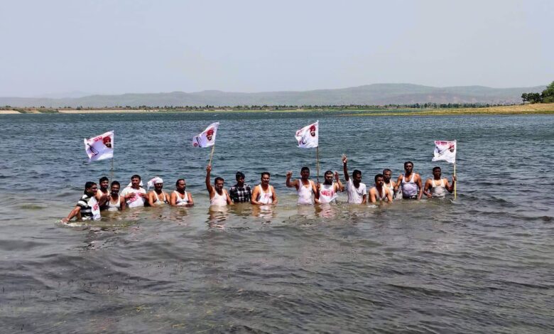 विश्रोली धरणाच्या जलपात्रात कार्यकर्त्यांनी उतरून सरकारविरोधात जोरदार घोषणाबाजी केली. - आत्मदहनाचा प्रयत्न करणाऱ्या कार्यकर्त्यांना तातडीने काढण्यात आले.