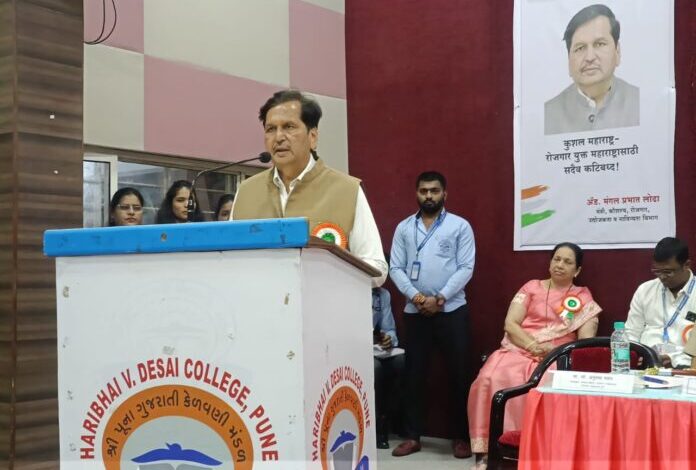 कौशल्य, रोजगार, उद्योजकता व नाविन्यता विभाग, पुणे पोलीस आयुक्तालय आणि हरीभाई व्ही देसाई कॉलेज कला विज्ञान व वाणिज्य महाविद्यालय यांच्या संयुक्त विद्यमाने हरीभाई व्ही देसाई कला विज्ञान व वाणिज्य महाविद्यालय येथे आयोजित ‘पंडीत दीनदयाळ उपाध्याय रोजगार मेळाव्या प्रसंगी ते बोलत होते. यावेळी जिल्हा कौशल्य विकास, रोजगार, उद्योजकता व नाविन्यता विभागाच्या उपायुक्त अनुपमा पवार, सहायक आयुक्त सागर मोहिते, पोलीस सहायक आयुक्त सरदार पाटील, हरीभाई व्ही देसाई कला विज्ञान व वाणिज्य महाविद्यालयाचे उपाध्यक्ष जनक शहा, सचिव हेमंत मणियार, सहसचिव दिलीप जगड यांच्यासह विविध कंपन्याचे प्रतिनिधी, विद्यार्थी उपस्थित होते.