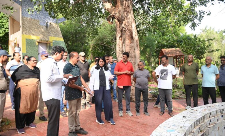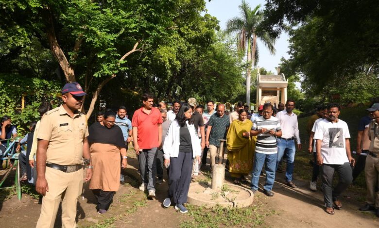 स्वामी विवेकानंद बगीचा, खावू गल्ली व अग्निशमन उपकेंद्राची आयुक्त सौम्या शर्मा चांडक यांच्याकडून पाहणी