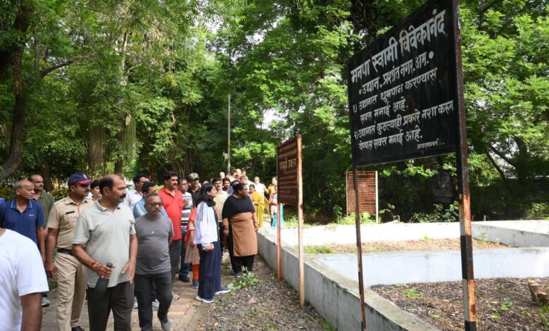 स्वामी विवेकानंद बगीच्याच्या सौंदर्यीकरण कामांचा आढावा घेतांना आयुक्तांनी झाडांची संख्या वाढवणे, वॉकिंग ट्रॅक सुधारणे व खुल्या जागांचा अधिक प्रभावी वापर करण्याबाबत सूचना दिल्या.