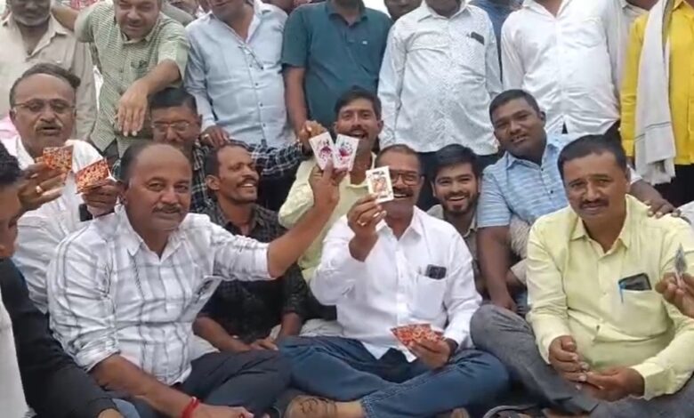 चांदूरबाजार तालुक्यात शेतकऱ्यांचे कर्जमाफीसाठी चक्काजाम आंदोलन; खुल्या आम चौकात रमी पत्ते वाटून सरकारचा निषेध