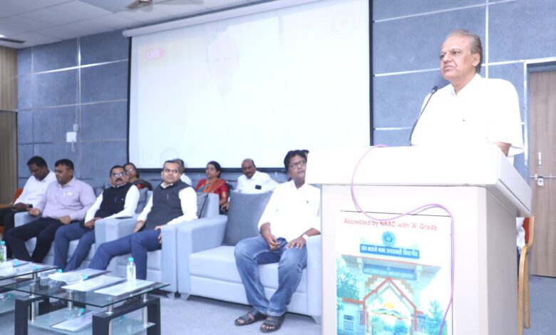 अमरावती – कर्मचारी सेवानिवृत्त होत असतांना त्यांच्या कार्याचा सत्कार करणे हे माझे महत्वाचे कार्य मी समजतो. विद्यापीठाचा आज जो देशभरात नावलौकीक आहे, तो कर्मचा-यांमुळेच. आव्हानात्मक परिस्थितीतही विद्यापीठातील कर्मचारी आपल्या कुटुंबासारखे येथे राबतात. यापुढेही असेच कार्य करीत राहावे, जेणेकरुन विद्यापीठाचा नावलौकीक आणखी वाढेल, असे प्रतिपादन कुलगुरू डॉ. मिलींद बारहाते यांनी केले. संत गाडगे बाबा अमरावती विद्यापीठातील कर्मचा-यांच्या सेवानिवृत्तीप्रसंगी आयोजित कर्तव्यपूर्ती सोहळ्यात अध्यक्षस्थानावरुन ते बोलत होते. व्यासपीठावर प्रमुख अतिथी म्हणून सांख्यिकीशास्त्र विभागप्रमुख तथा विद्यापीठ व्यवस्थापन परिषद सदस्य डॉ. राजेश सिंह, प्र-कुलगुरू डॉ. महेंद्र ढोरे, कुलसचिव डॉ. अविनाश असनारे, नियंत्रण अधिकारी उपकुलसचिव श्री मंगेश वरखेडे, सहा. कुलसचिव अनिल काळबांडे, विद्यापीठ कर्मचारी संघाचे अध्यक्ष श्री अजय देशमुख, सत्कारमूर्ती श्री गजानन पंचवटे, सौ. पंचवटे, श्री प्रकाश शिंदे, सौ. शिंदे, श्री अशोक राऊत, सौ. राऊत, जनसंपर्क अधिकारी डॉ. विलास नांदुरकर उपस्थित होते.