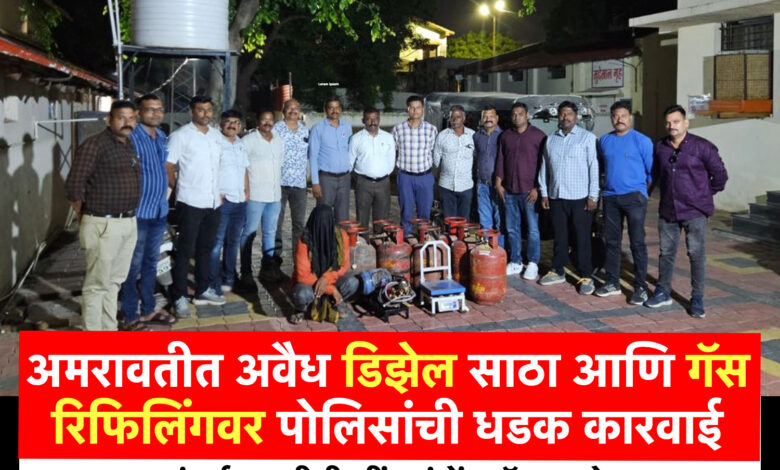 एक मोठी बातमी अमरावती शहरातून समोर येत आहे. शहरात अवैधरित्या डिझेलचा साठा आणि गॅस रिफिलिंगचा व्यवसाय करणाऱ्यांवर शहर गुन्हे शाखेने जोरदार कारवाई केली आहे. या कारवाईमध्ये मोठ्या प्रमाणात डिझेल, गॅस सिलेंडर आणि इतर साहित्य जप्त करण्यात आले आहे.