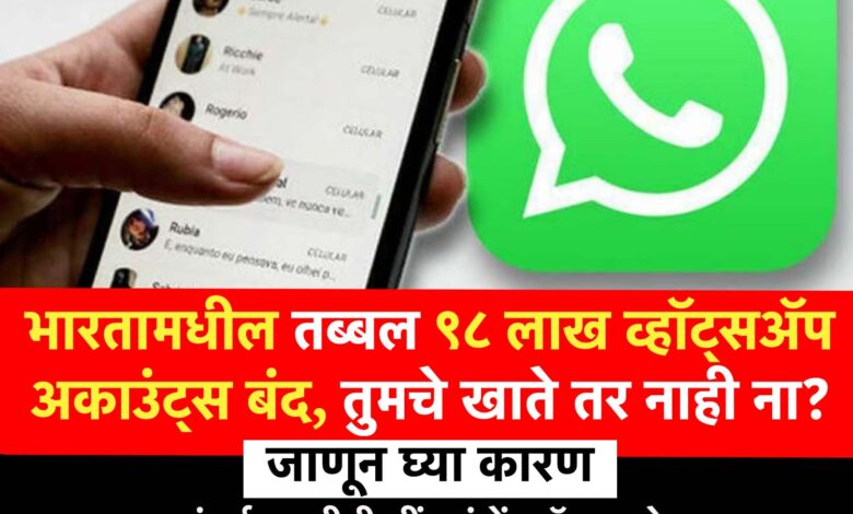Digital Security : जून २०२५ मध्ये मेटाच्या व्हॉट्सअॅपने भारतातील तब्बल ९८ लाखांहून अधिक युजर्सची खाती नियमभंगामुळे निलंबित केल्याची माहिती समोर आली आहे.