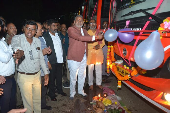 मंत्री ॲड कोकाटे यांनी बसमध्ये आसनस्थ होत बसेसला मार्गस्थ केले.