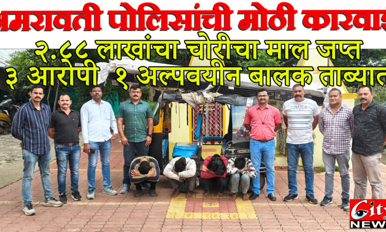 अमरावती पोलिसांची मोठी कारवाई: २.८८ लाखांचा चोरीचा माल जप्त, ३ आरोपी आणि १ अल्पवयीन बालक ताब्यात