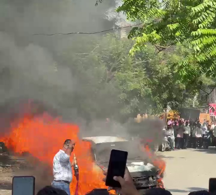 अकोला – रामदासपेठ पोलिस ठाण्याच्या हद्दीत येणाऱ्या देशमुख सुपर स्पेशालिटी हॉस्पिटलच्या पार्किंगमध्ये सोमवारी दुपारी ही घटना घडली. नेहमीप्रमाणे पार्किंगमध्ये गाड्या उभ्या होत्या. त्याच वेळी एका चारचाकी वाहनातून अचानक धूर निघू लागला आणि पाहता पाहता त्याला भीषण आग लागली. घाबरलेल्या लोकांनी तातडीने गाडी बाहेर रस्त्यावर काढली आणि इतर गाड्यांना सुरक्षित केले. प्रत्यक्षदर्शींनी सांगितले की, गाडी बाहेर आणताच ती अक्षरशः धगधगून जळू लागली आणि काही वेळातच पूर्ण खाक झाली. घटनेची माहिती मिळताच फायर ब्रिगेड आणि पोलीस तातडीने घटनास्थळी दाखल झाले. अग्निशमन दलाने पाणी टाकून आगीवर नियंत्रण मिळवले. मात्र त्यावेळीपर्यंत कार पूर्णतः जळून खाक झाली होती. पोलिसांच्या प्राथमिक तपासात, तीव्र उष्णता आणि उमस यामुळे वाहनाच्या वायरिंगमध्ये शॉर्टसर्किट होऊन ही आग लागल्याची शक्यता वर्तवण्यात आली आहे. या घटनेनंतर काही वेळ परिसरात प्रचंड गोंधळाचे वातावरण होते. पोलिसांनी घटनेचा पंचनामा करून तपास सुरू केला आहे.
